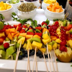 Schokobrunnen mit verschiedenen Fruchtspießen