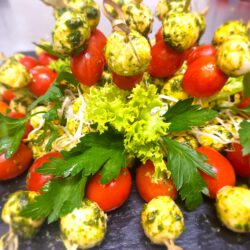 ~Cherrytomaten und Babymozzarella mit Basilikum-Olivenöldressing