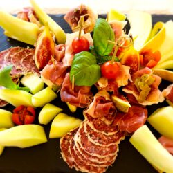 ~Auswahl von rohen Schinken mit süßer Melone